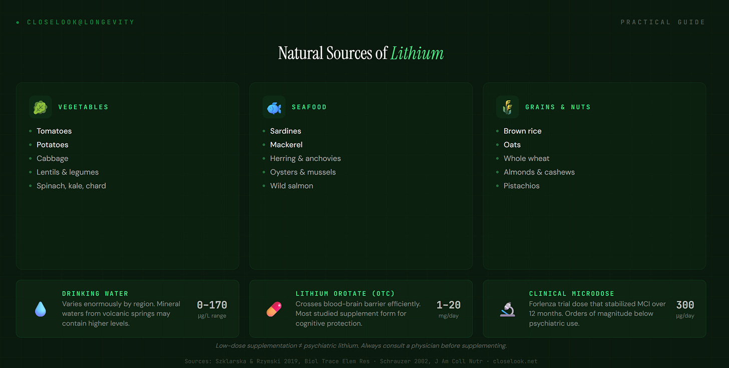 This was not pharmacological lithium at psychiatric doses. This was trace lithium — the kind found naturally in groundwater, vegetables, and grains.