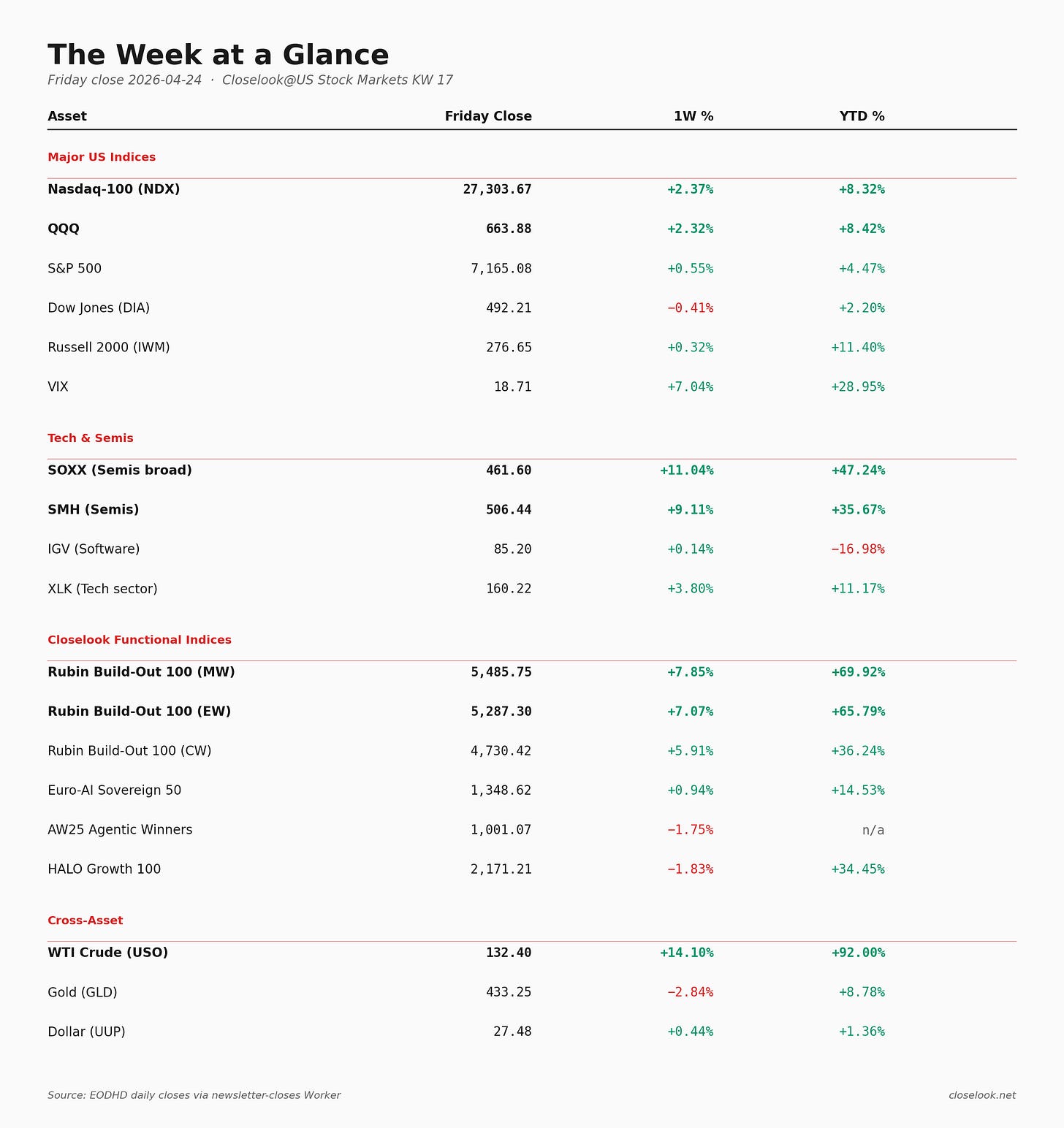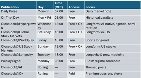Thank you for reading this week’s edition of Closelook@US Stock Markets, dated April 26, 2026 👋. The next edition will be published on May 3, 2026.