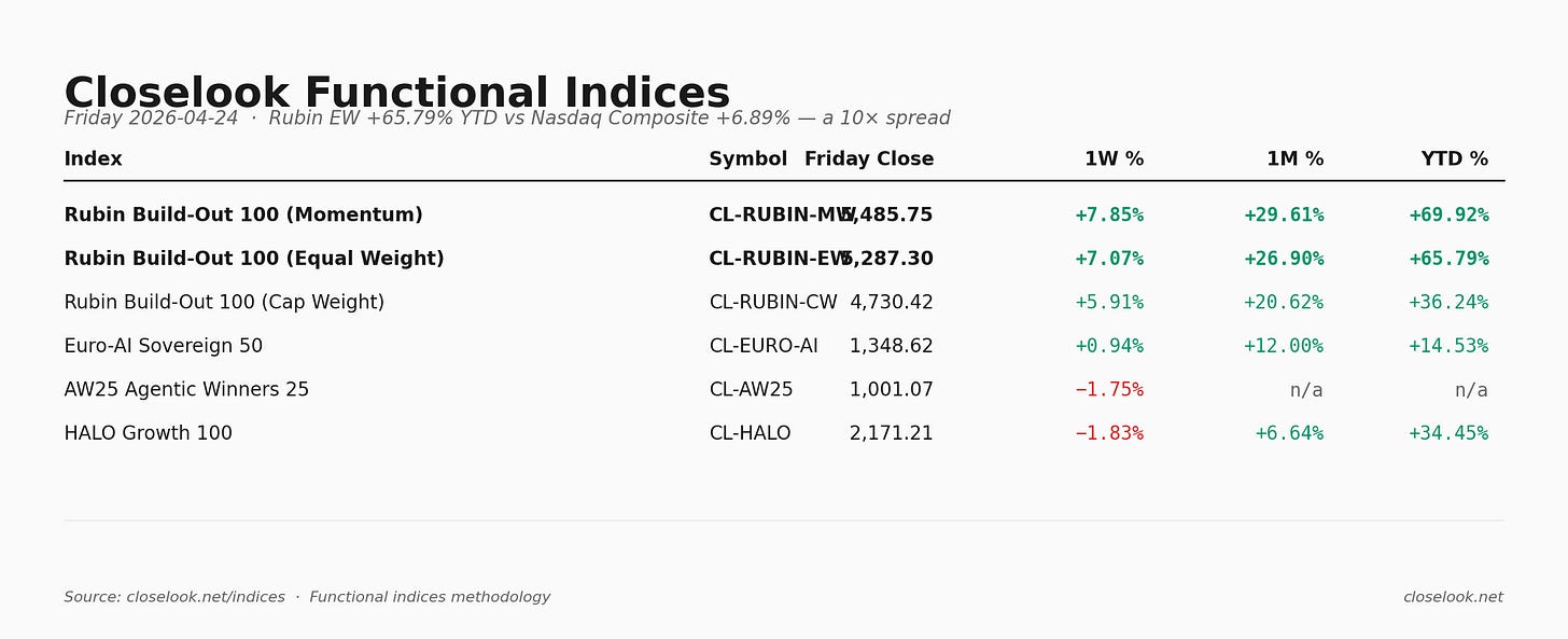 · AI Build-Out — Rubin-index-aligned single-stock portfolio (closelook.net/portfolios/ai-buildout) (this newsletter)