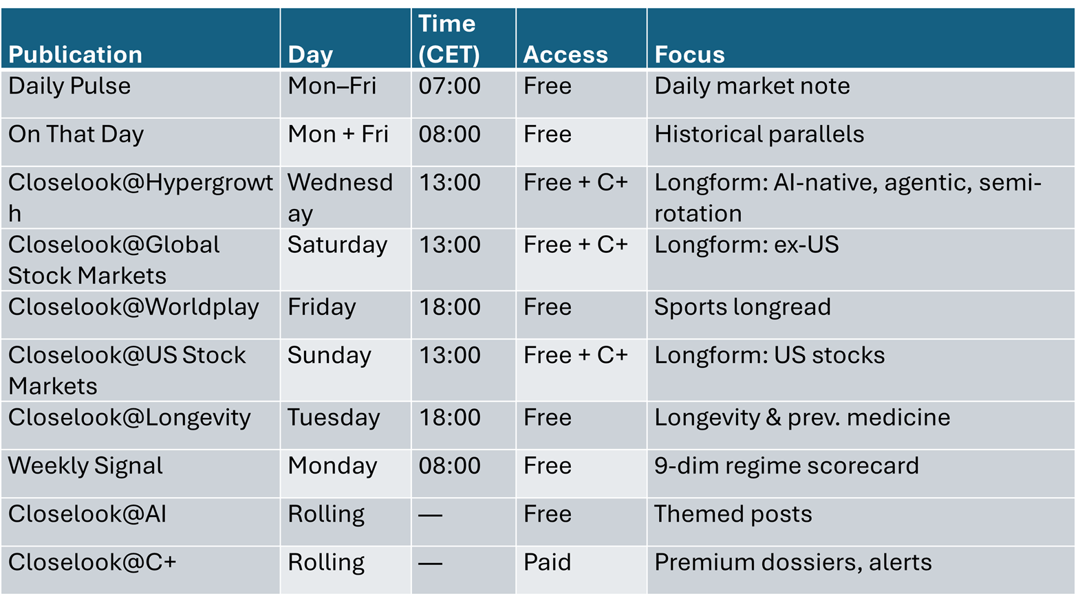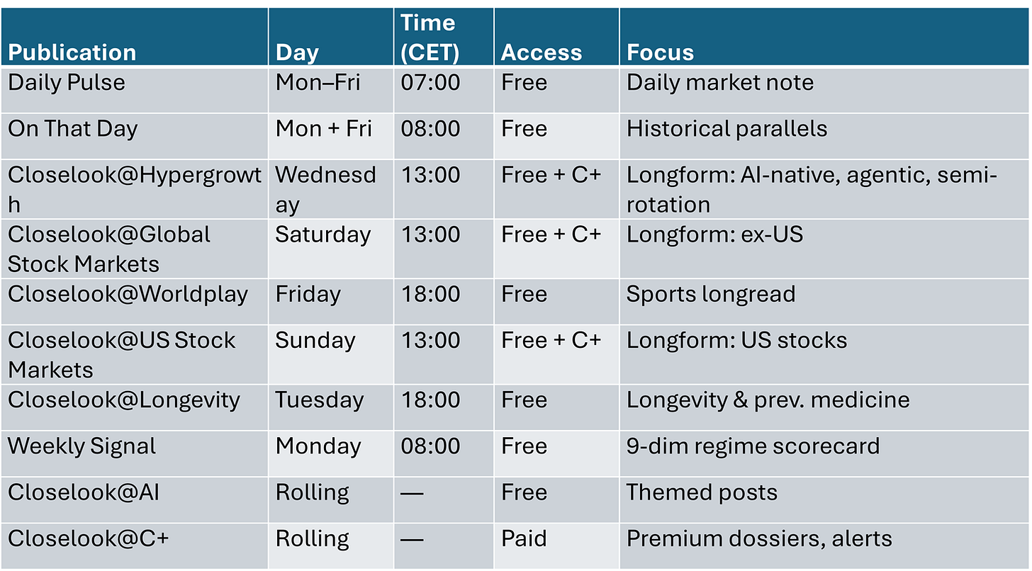 Thank you for reading this week’s edition of Closelook@Global Stock Markets, dated April 26, 2026 👋. The next edition will be published on May 3, 2026.