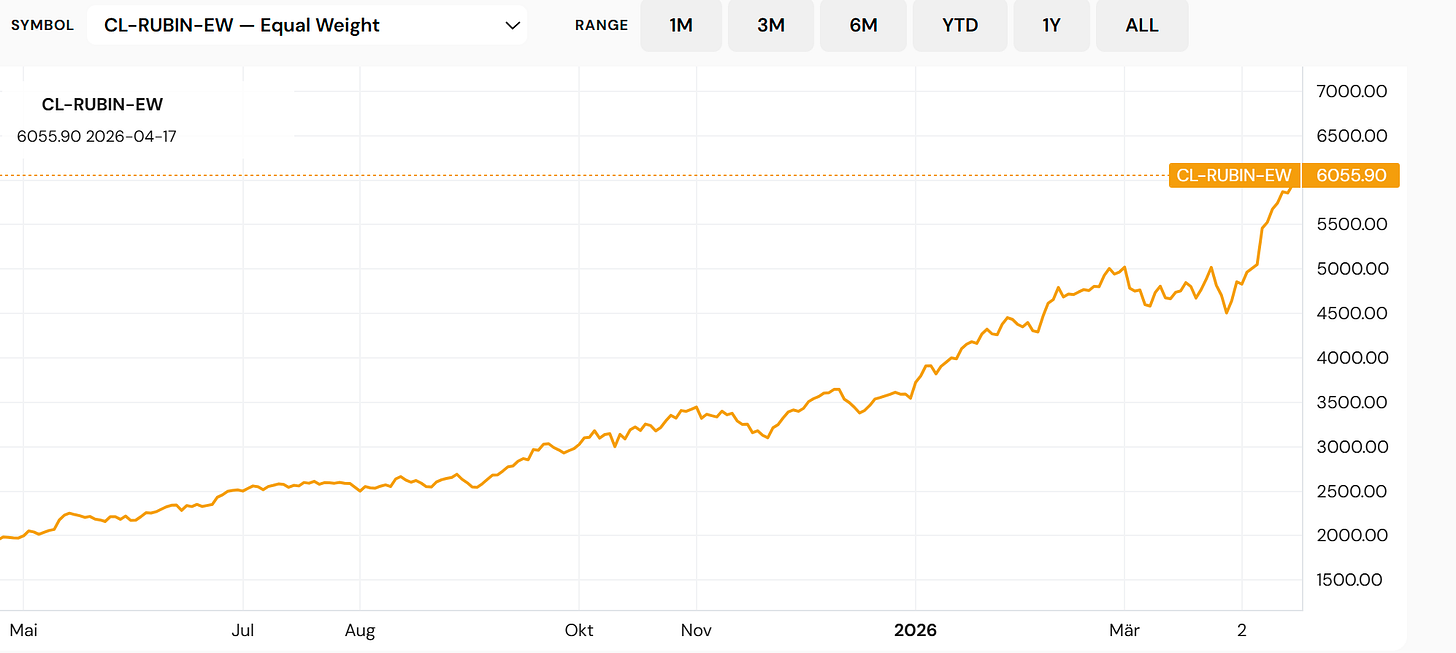 • Rubin Build-Out 100 — 100 stocks, 18 sectors, AI infrastructure (closelook.net/indices/rubin)