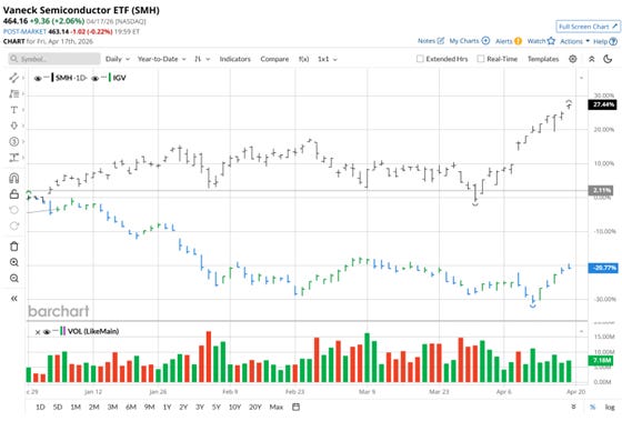 Yardeni’s April 15 read aligns on three axes with the Confluent Bullish verdict from Section 6. First, the AI-infrastructure leadership has broadened, not narrowed — hyperscalers drive the US tap. At the same time, the SMH printed a fresh 52-week high, exactly the pattern Section 4 identifies via the software/cloud bottom-recovery (IGV, CLOU, CIBR).